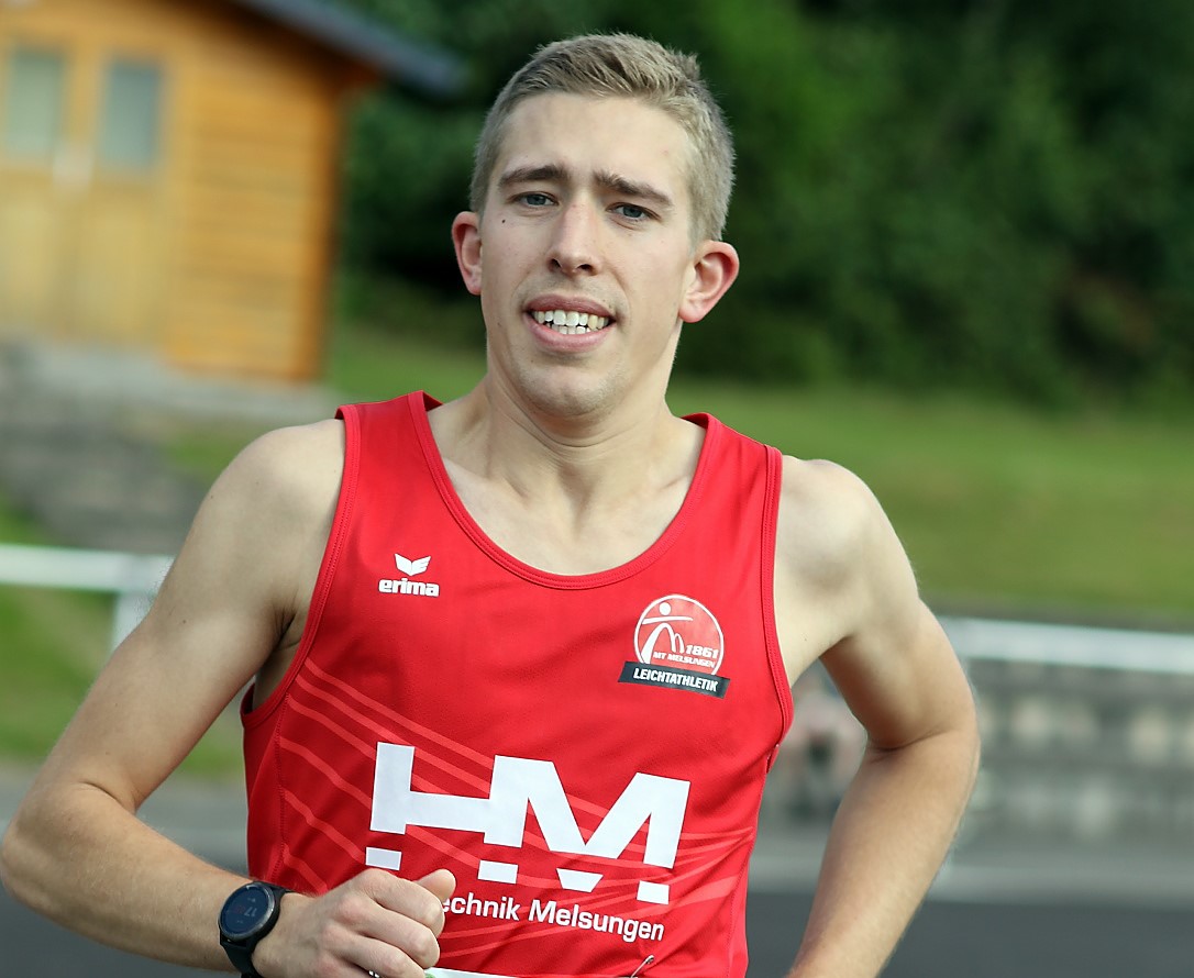 Körle - Lorenz Funck (MT) gelang der einzige Gesamtsieg der heimischen Athleten beim dritten Durchgang zum Nordhessencup mit Start und Ziel auf dem Sportgelände an der Berglandhalle in Körle. Im Rennen über fünf Kilometer der Männer setzte sich der angehende Maschinenbau-Techniker in 17:19 Minuten bereits auf der Sportplatzrunde an die Spitze und baute seinen Vorsprung bis zur ICE-Trasse kontinuierlich aus. „Bereits hier hatten die von Aaron Hermenau (Laufteam Kassel/17:34) und Martin Herbold (TuSpo Borken/17:52) angeführten Verfolger keine Chance mehr mich einzuholen“, strahlte Funck nach dem Rennen und wiederholte souverän seinen Sieg von 2022.